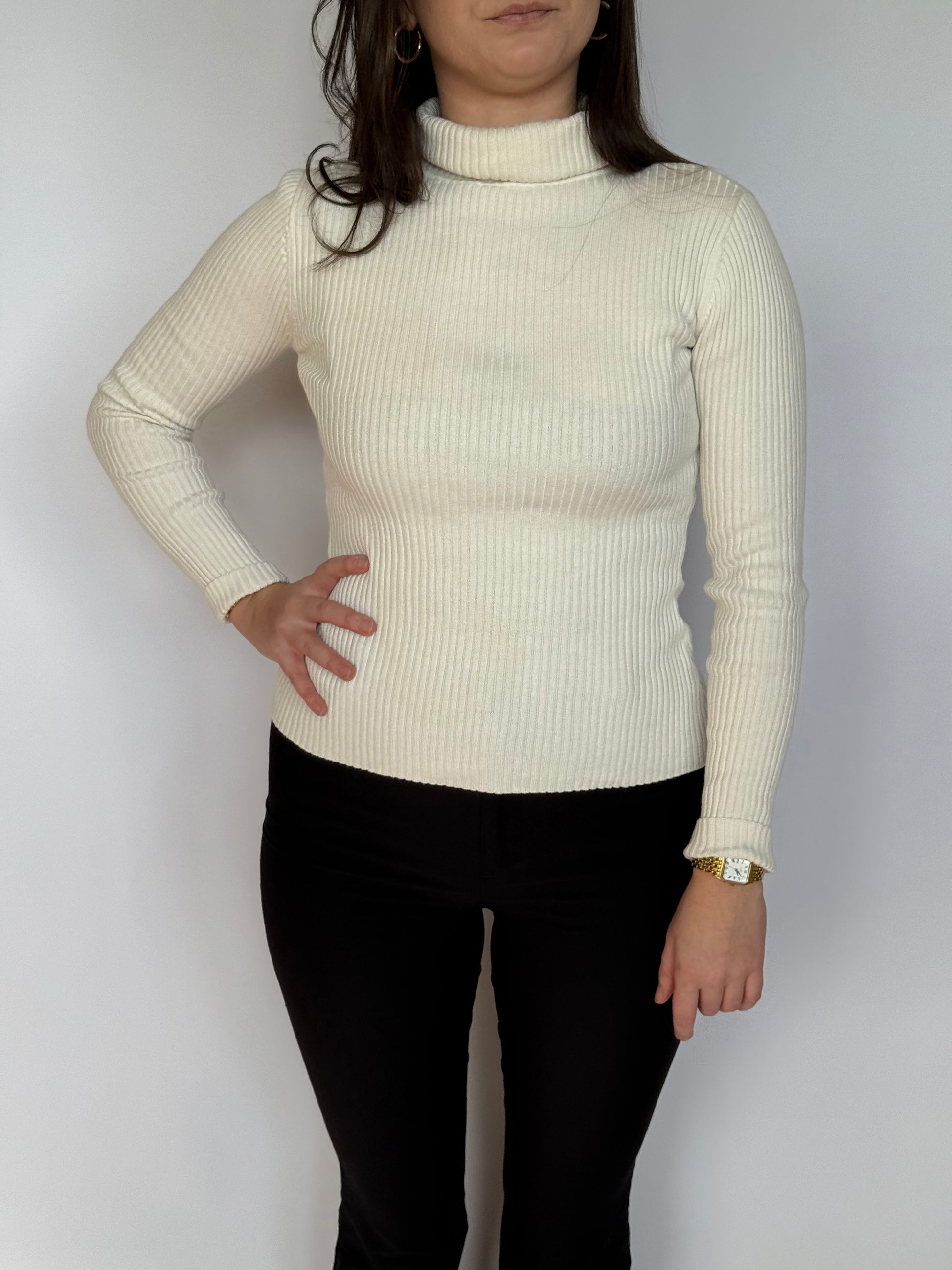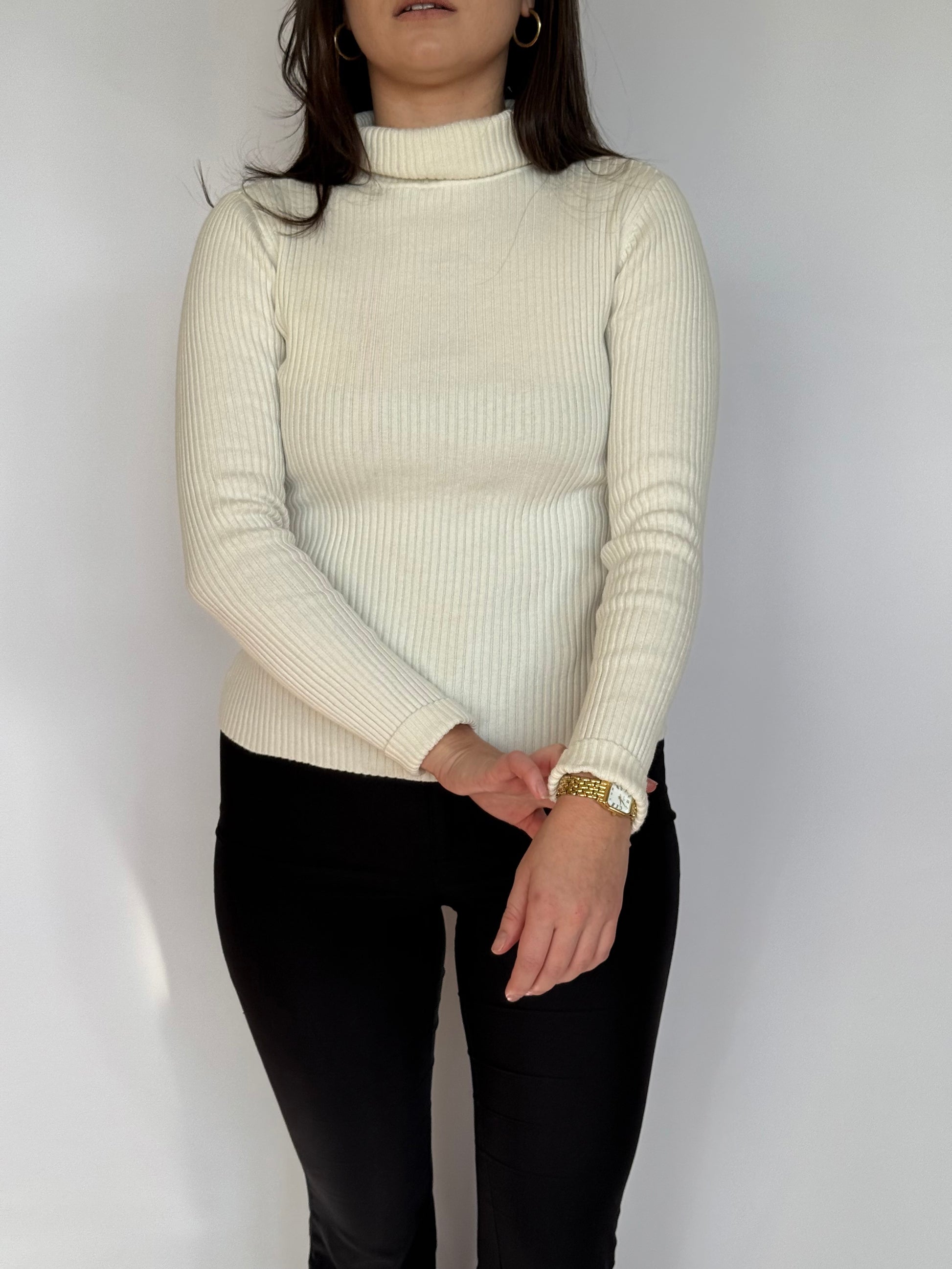 - Ribbed long sleeve with a thick roll neck