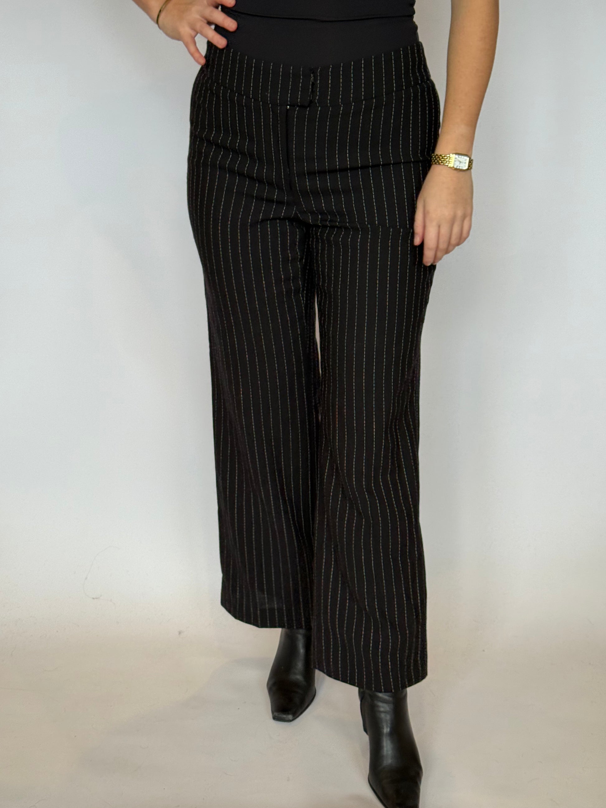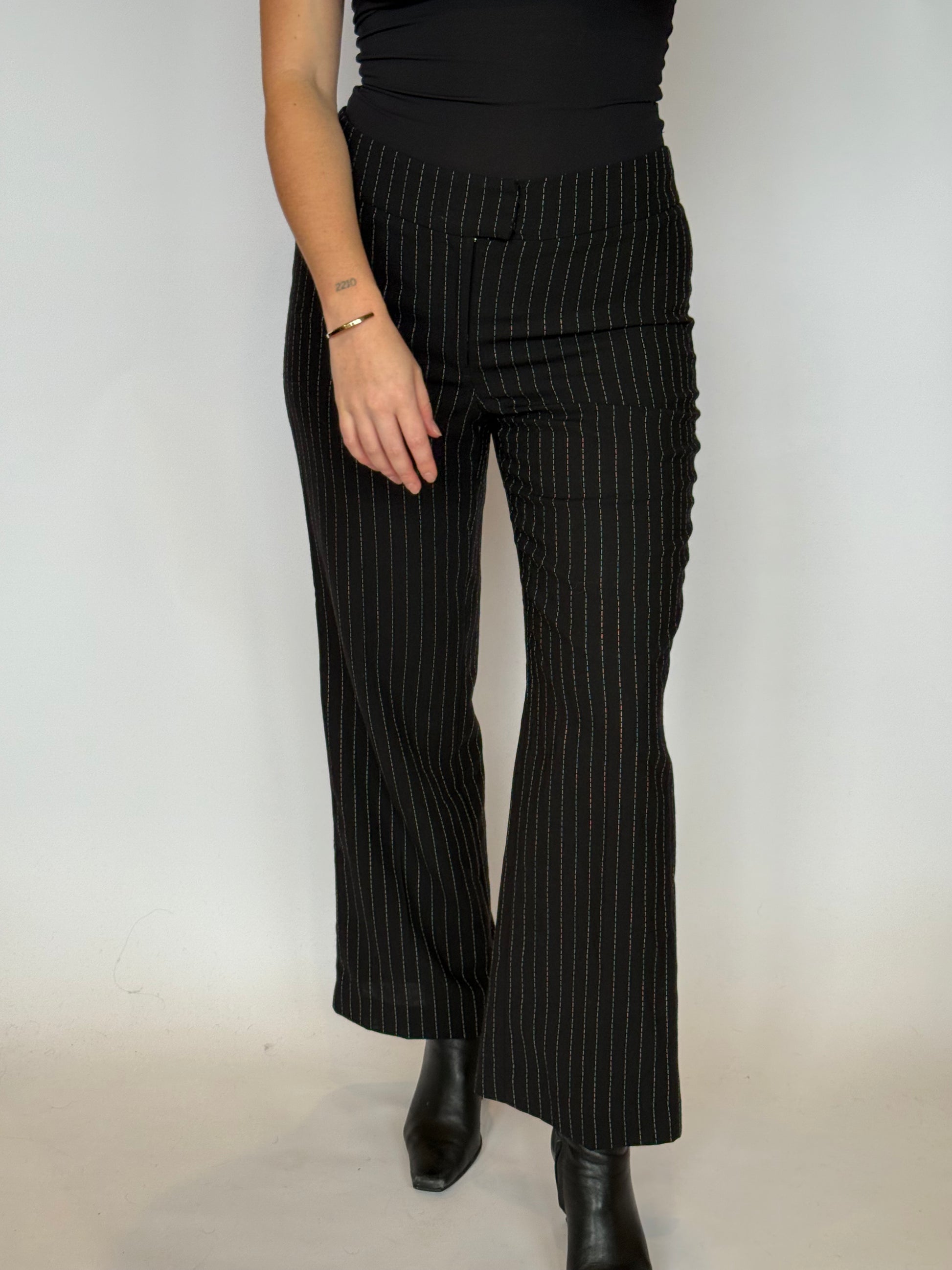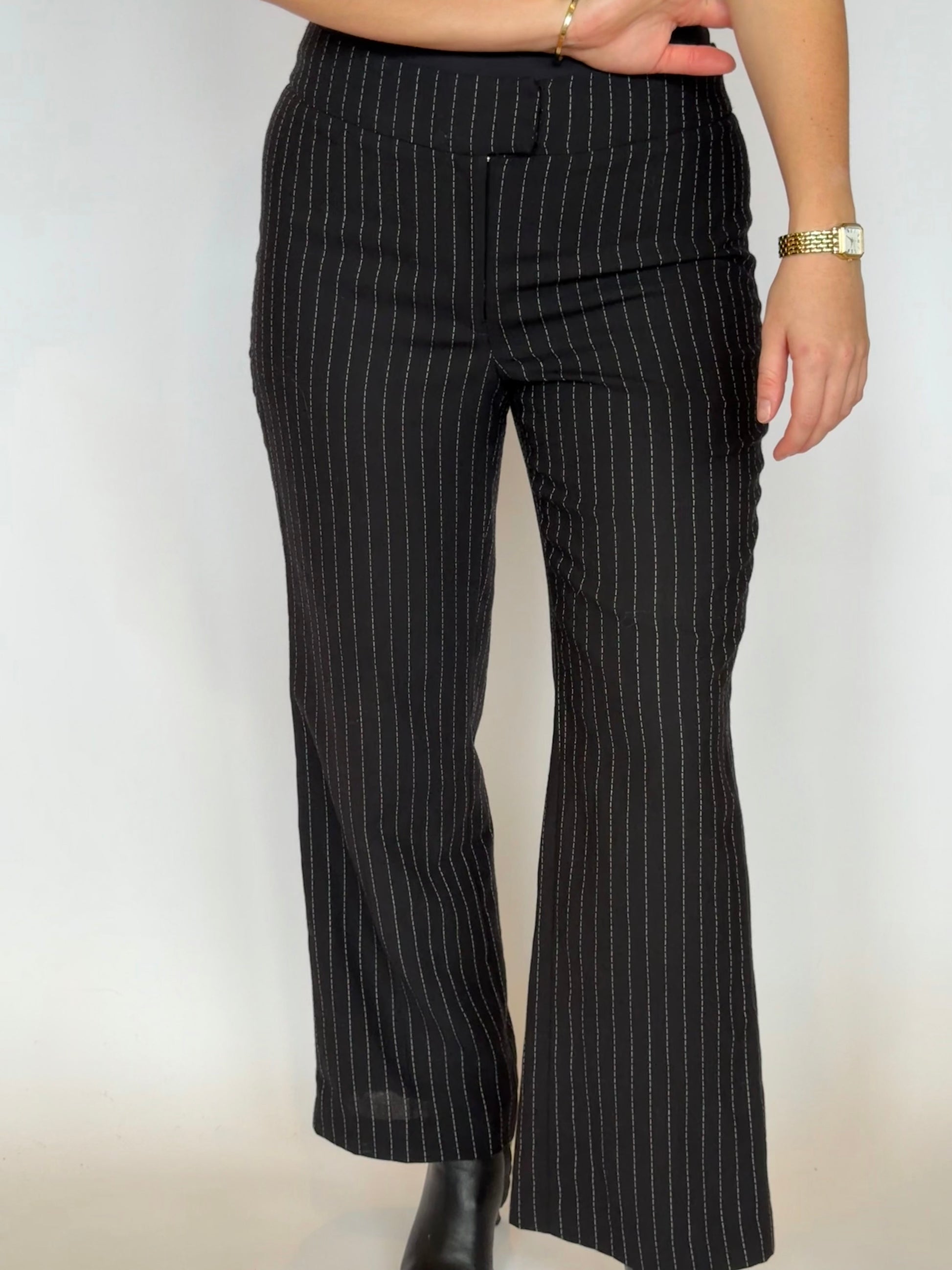 Pinstripe flared wool pants - with a double hook closure, button and zip