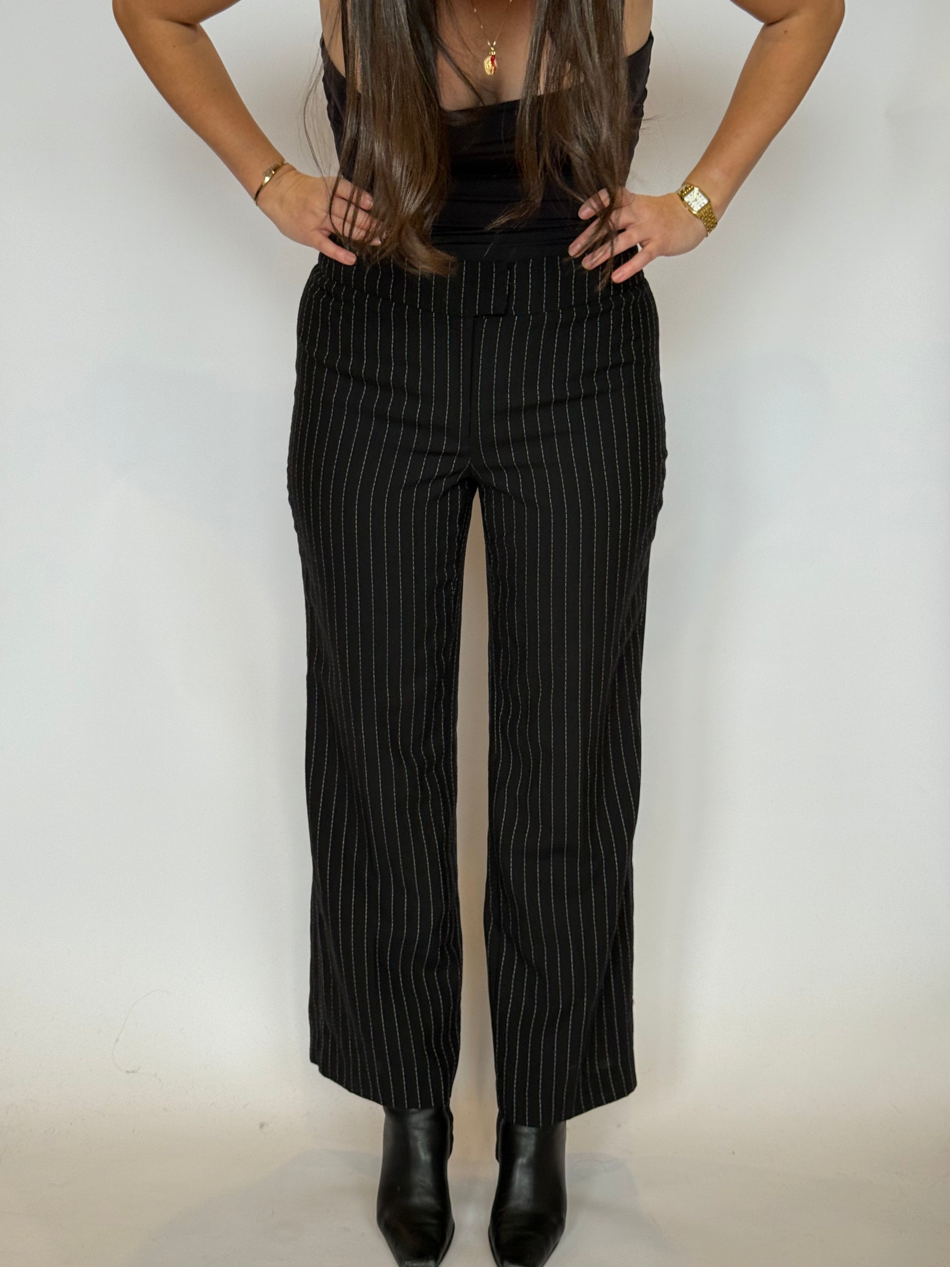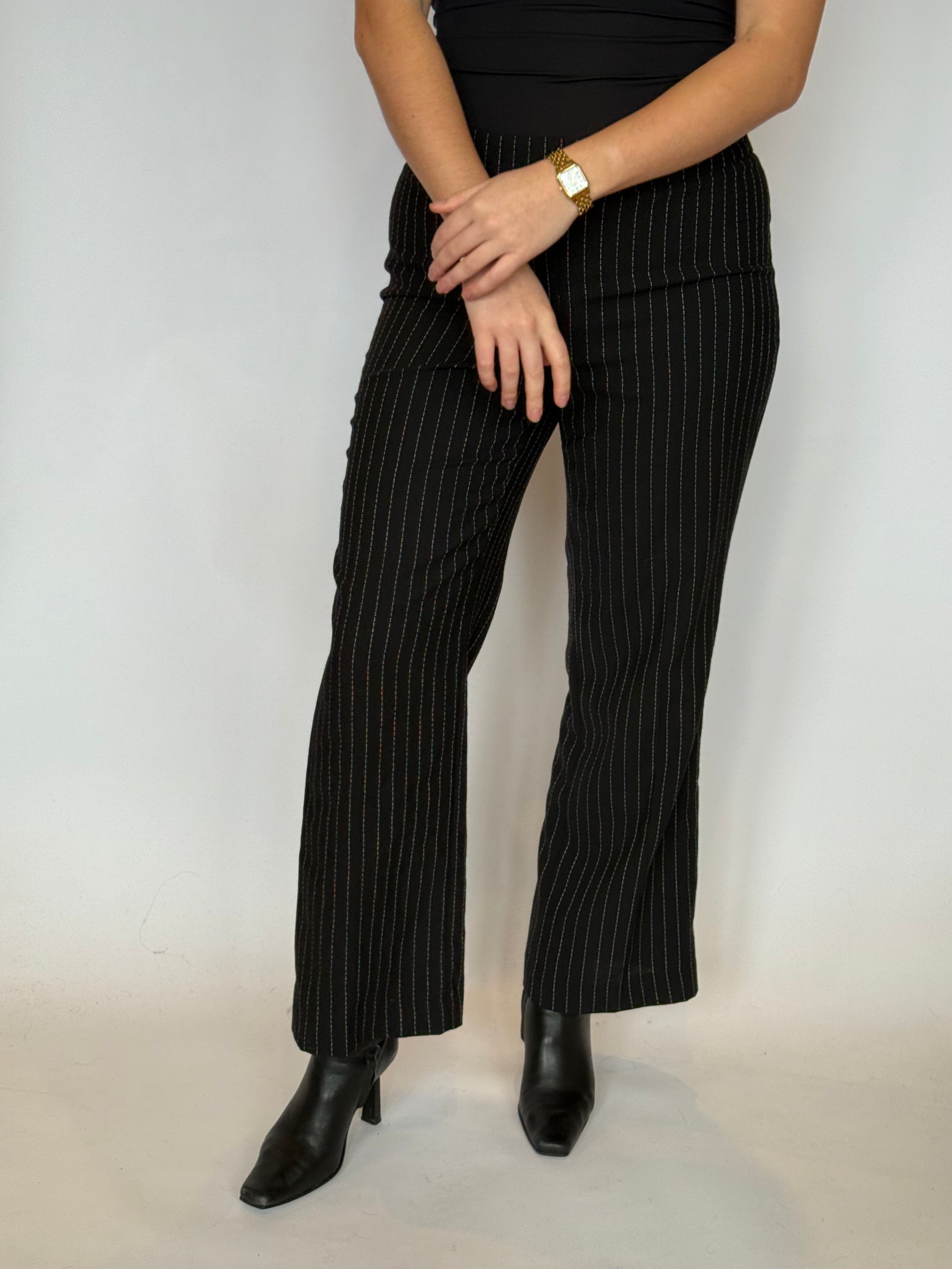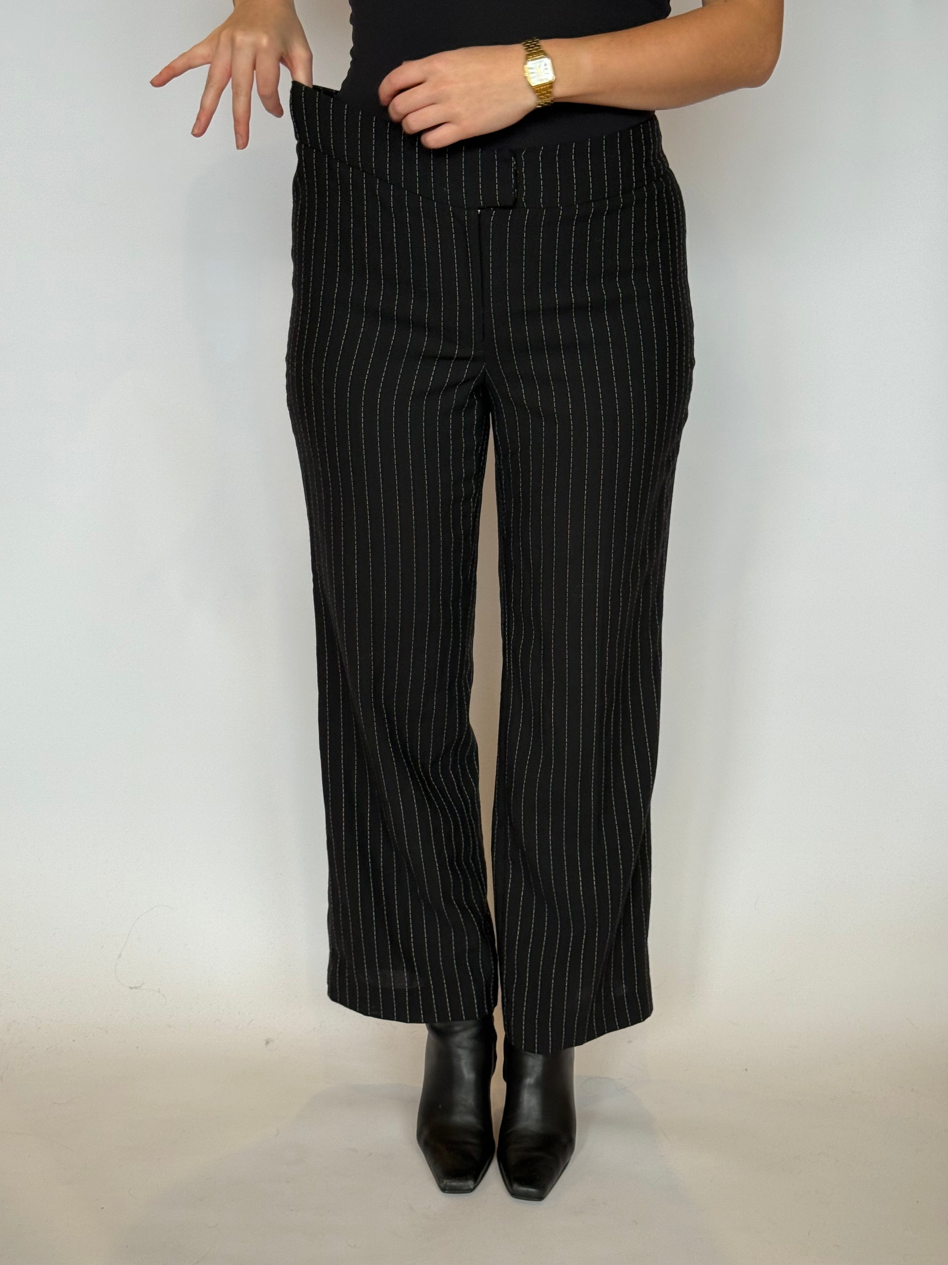 Pinstripe flared wool pants - with a double hook closure, button and zip