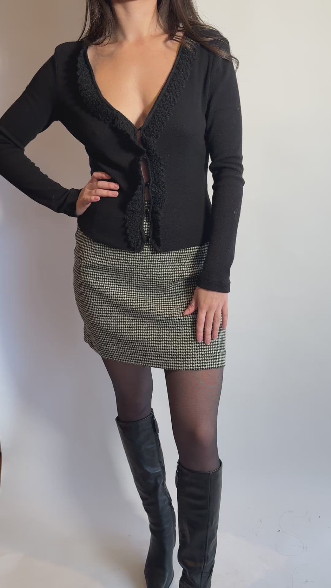 - Checkered mini skirt with a zip and hook eye closure at the back